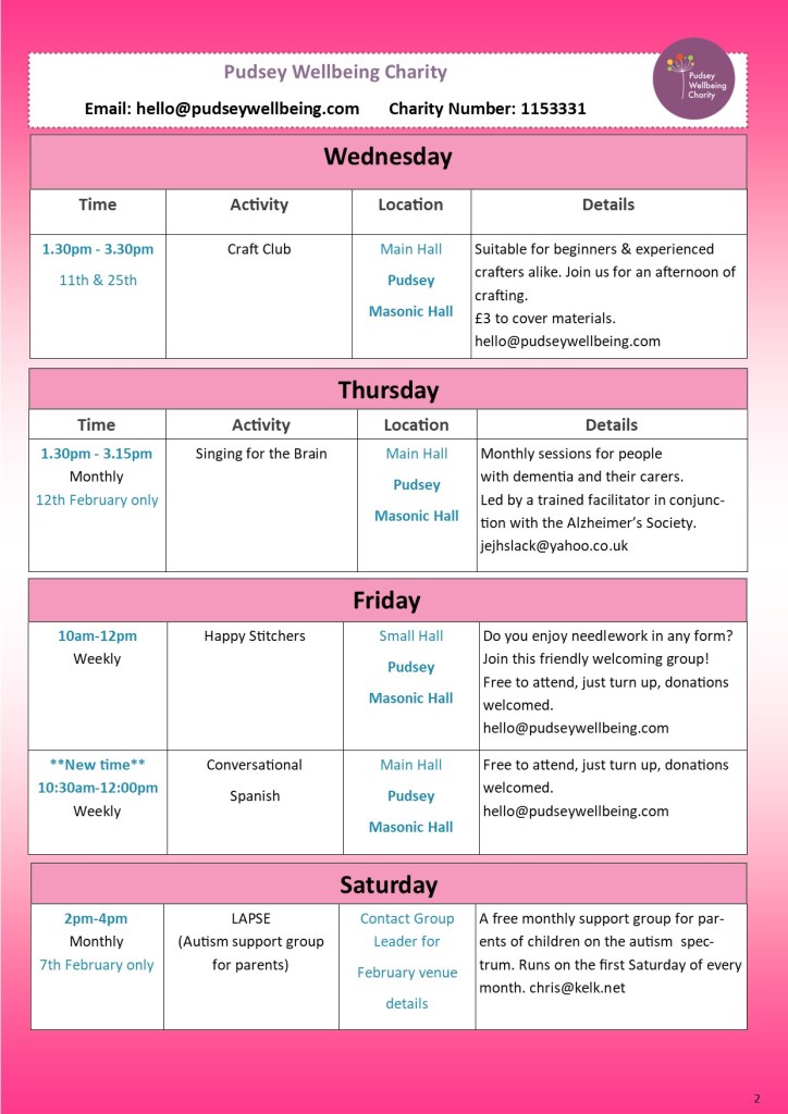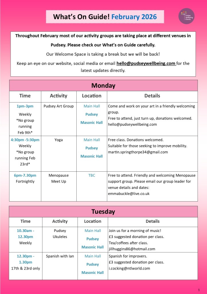 We are currently in the process of moving premises. Please read our What’s On Guide carefully for details of all groups and temporary venues they will take place in.