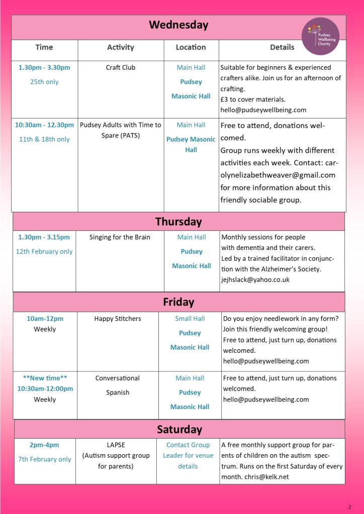 We are currently in the process of moving premises. Please read our What’s On Guide carefully for details of all groups and temporary venues they will take place in.